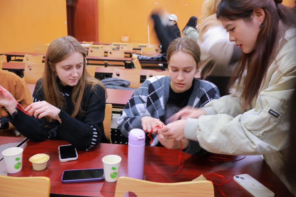此次活动旨在增进太阳集团中国员工与职工的友谊交流,同时展示中国优秀传统文化的魅力。活动开始,23汉教的同学们轮流献上精彩的演出,一首《最炫民族风》让现场气氛高涨,中国古代文化吟诵《一剪梅》等节目让现场的观众感受到了中华文化的独特魅力,同学们收获满满。随后,剪纸非遗传承人张建志老师和他的助理徐延芳老师向全体参与活动者展示了复杂美丽惟妙惟肖的剪纸作品,同学们积极地向老师提问,现场互动格外活跃,同时他们还体验了如何编织中国结,体验之余,《你画我猜》《abcd》《大小西瓜》等游戏依次展开,同学们在活动中展现才华和热情,也在互动中加强与各国青年的友谊交流。